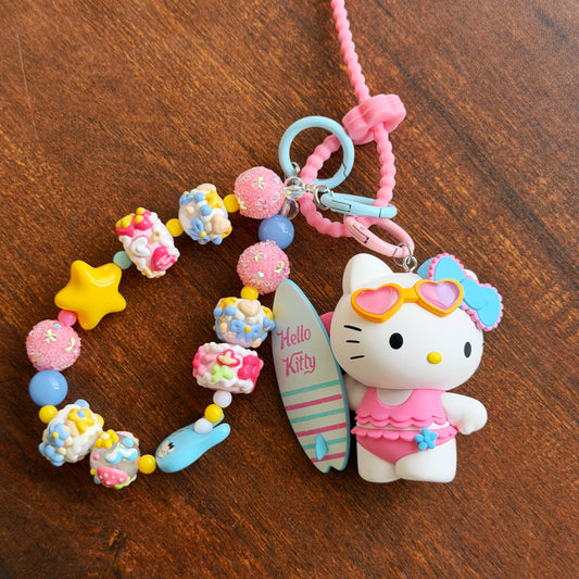 [RARE] Pop Mart Sanrio Hello Kitty South Island Surfing Charm Handmade Key/Phone Chain - Official Charm
