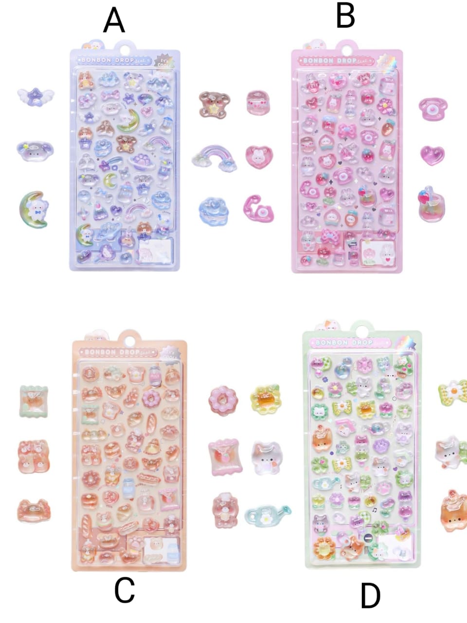 Brighten your day with this magical Bonbon Drop Puffy Sticker Set, featuring cute dreamy sheets filled with adorable characters, glittery accents, and jelly-style charm! From sleepy bears and sparkling stars to pastel potions and cozy snacks β€” this collection is a must-have for every kawaii stationery lover.