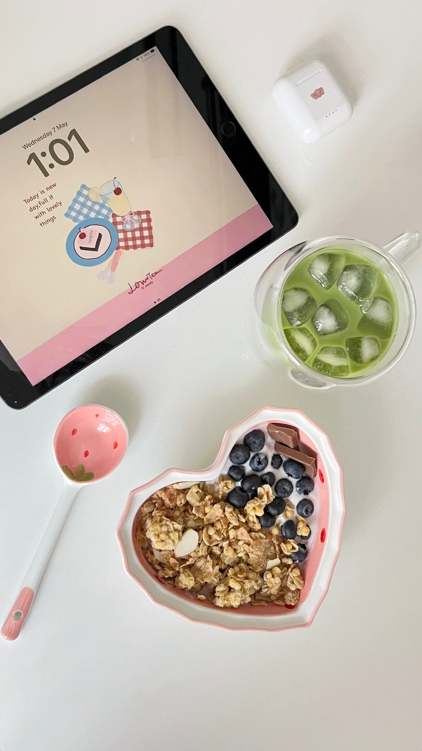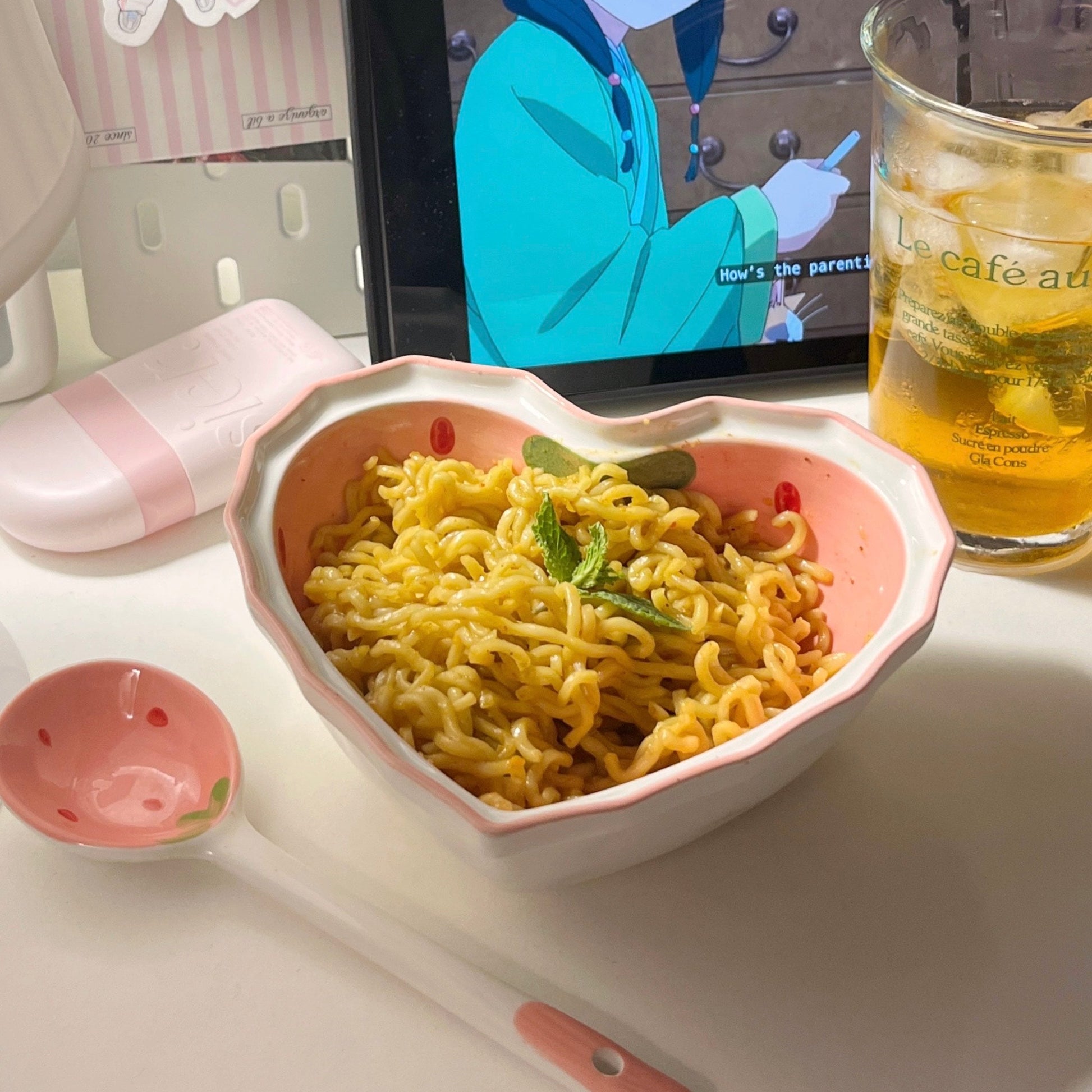Ceramic Heart Shaped Strawberry Salad Bowl Spoon Plate Set