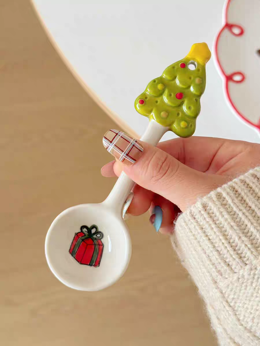 Designed with cute holiday-themed details, this spoon is perfect for stirring coffee, tea, desserts, or serving small treats. Made from ceramic, it adds a cozy Christmas vibe to your mugs and bowls.