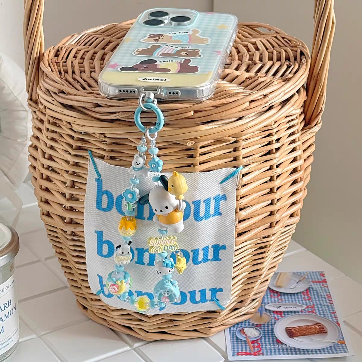 Handmade Pochacco Luxe Phone Charm (with Genuine Sanrio Bean Figure) - Preorder