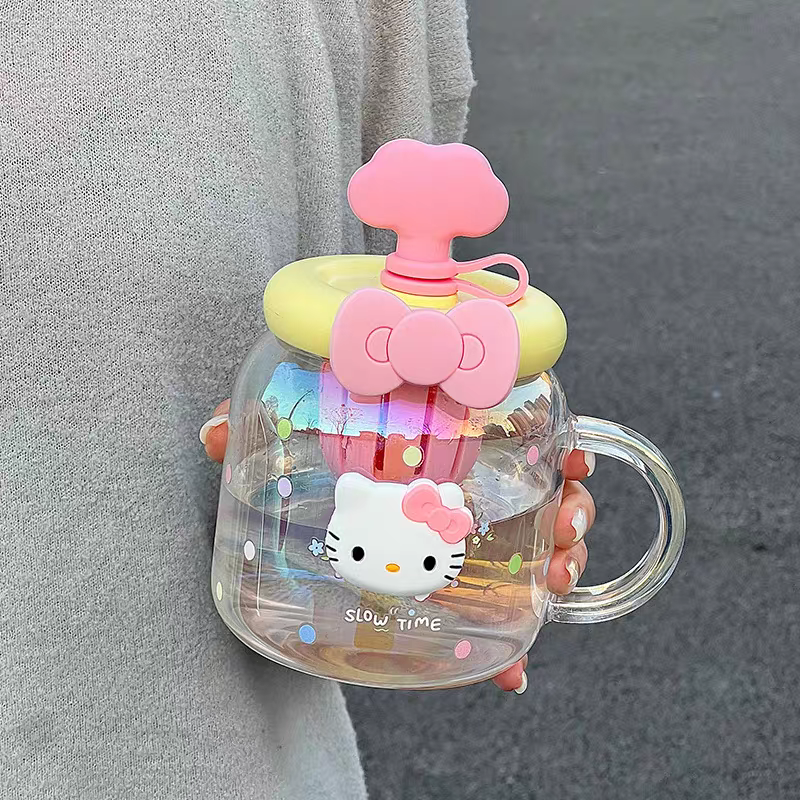Hello Kitty Glass Mug – Large Capacity 750ml with Straw & Handle | High Temperature Resistant